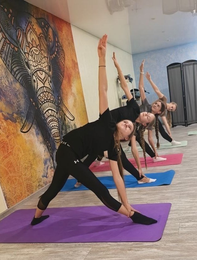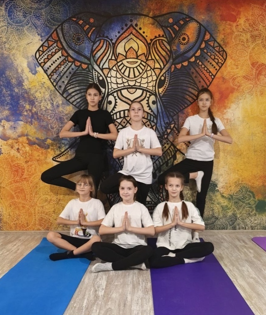На йоге ученицы 5-11 классов выучили несколько упражнений, расслабились, обрели гармонию с собой и научились слушать свое тело.