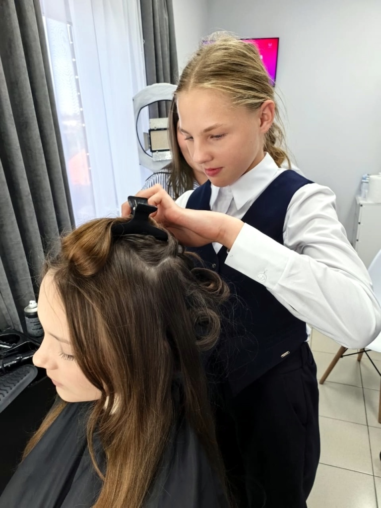 Девочки 6-7 классов посетили мастер-класс в одной из парикмахерских Алексеевки. Специалист показала им, как быстро и легко сделать красивую и аккуратную прическу. Также девушкам предложили завить несколько прядок на модели. Это было очень интересно!
