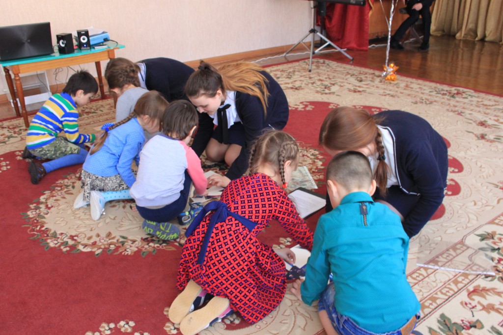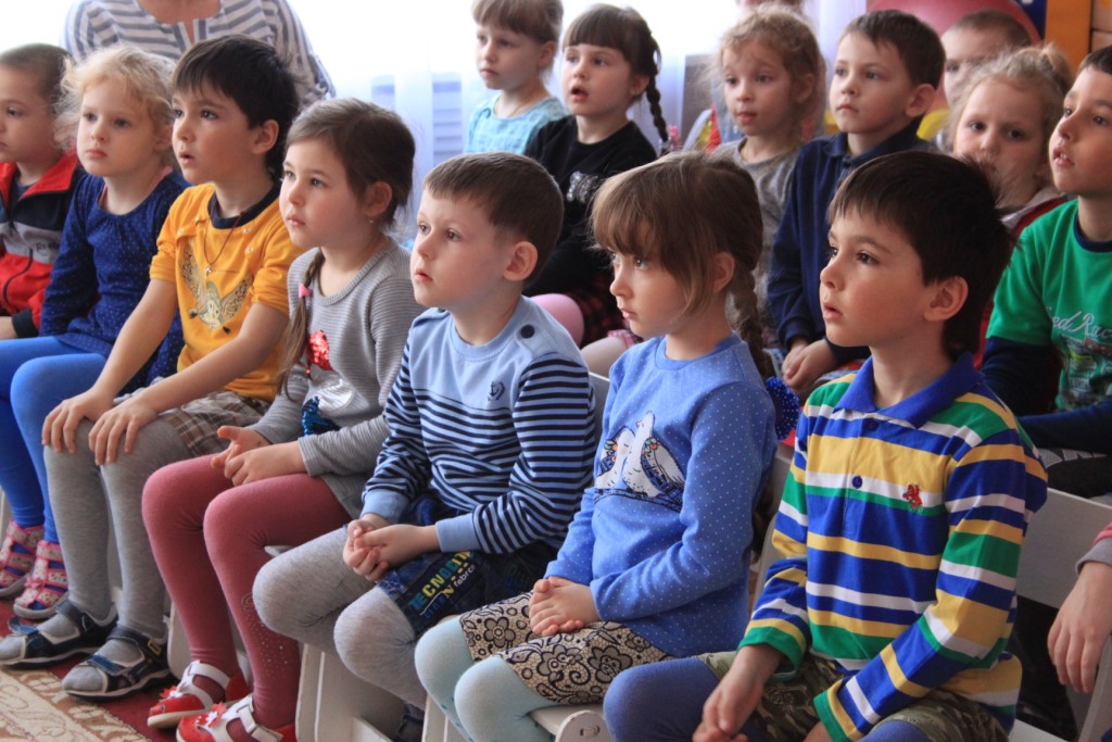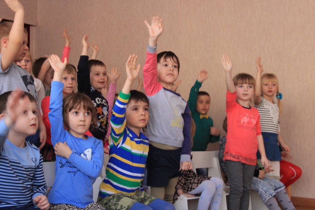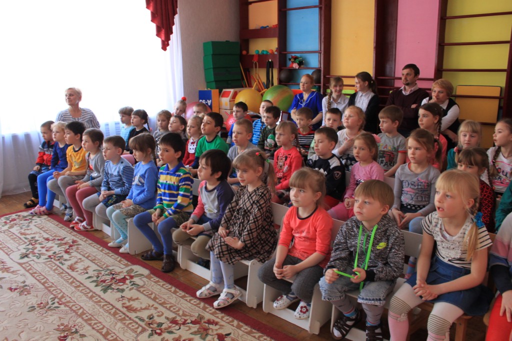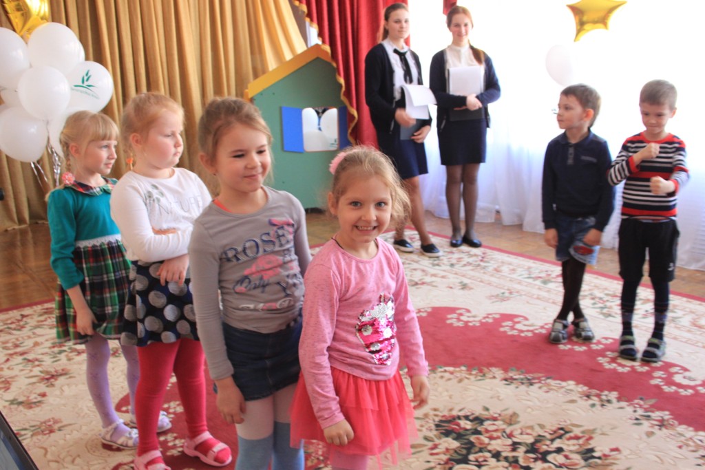 И в 12 и во 2 детских садах руководство и воспитатели встречали нас тепло, предоставляя актовые залы для проведения мероприятия. Мы заранее подготовились: придумали красочную презентацию, распределили роли, купили подарки детям, надули шарики с логотипом «Белогорский класс». Нам было интересно, как будут реагировать на незнакомых мальчишек и девчонок малыши, которым всего-то по 4-6 лет. Но наши ожидания оправдались. Настороженность сменилась заинтересованностью, а потом отбоя не было от желающих поучаствовать в конкурсах! Мы были счастливы, что смогли доставить столько радости! А какой весёлый получился флешмоб в конце праздника! Танцевали все: и ведущие, и воспитатели, и участники торжества, получившие небольшие сувениры. Нам хочется сказать спасибо всем, кто содействовал в проведении мероприятия: администрацию города, руководителей детских садов и, конечно же, маленьких жителей Алексеевки, искренних, общительных, любознательных.