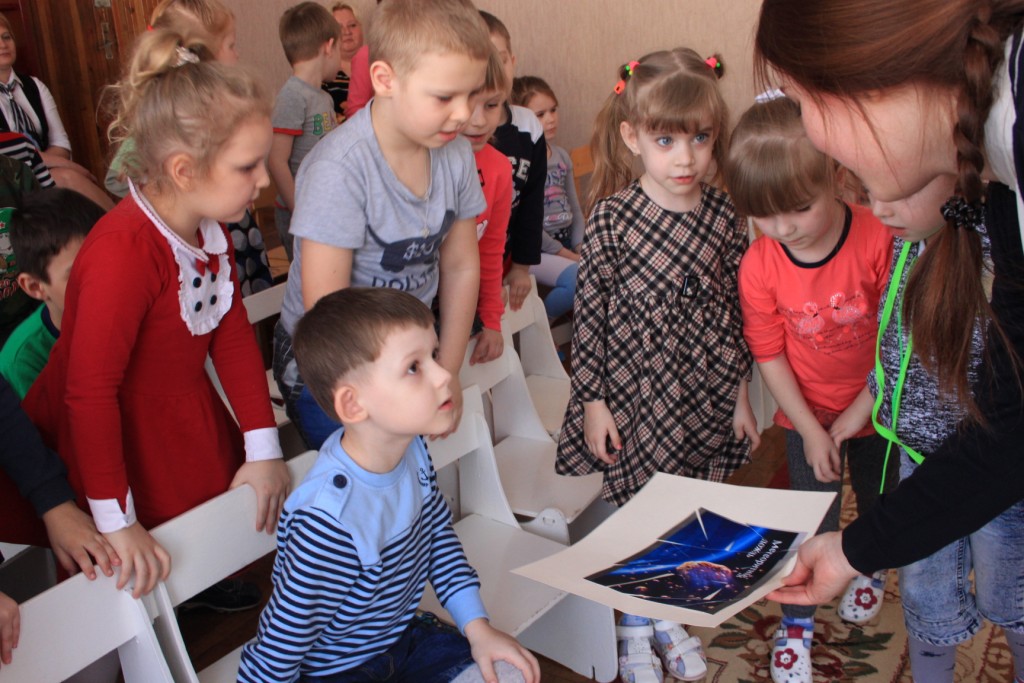 Встречи с ребятами были приурочены к празднованию в нашей стране Дня космонавтики. Хотелось не только рассказать маленьким гражданам нашей страны о героических достижениях в области космонавтики, но и развлечь детей, в игровой форме показать им, как выглядит Солнечная система, что такое «чёрные дыры», «туманность» и т.д. Думаем, что со своей задачей мы справились.
