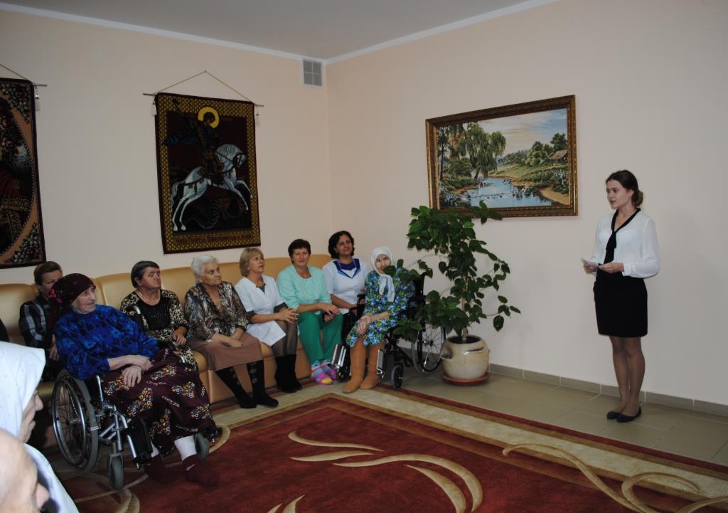 1 октября в Международный день пожилых людей учащиеся ЧОУ «СОШ «Белогорский класс» отправились в небольшое путешествие по Белгородской области: ученики побывали в домах престарелых в Никитовке, Иловке, в Доме ветеранов, где устроили небольшой концерт. Мы увидели на лицах бабушек и дедушек искреннюю, неподдельную радость, которую можно сравнить разве что с радостью ребенка, получившего конфету! Для них это был не просто концерт, а праздник… Праздник душевный… И я поняла, как просто, оказывается, подарить людям счастье! Немножко внимания, немножко заботы, немножко тепла – и человеку радостно жить!