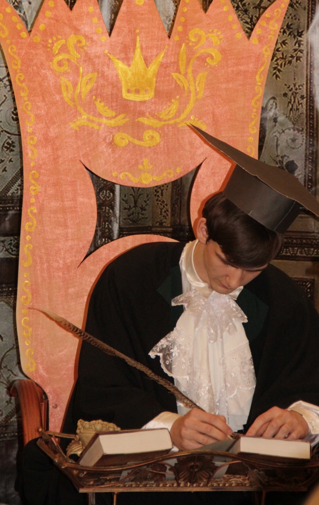 В день премьеры привычный кабинет 9-го класса преобразился, говоря словами Пушкина, в «волшебный край»! Яркие декорации, свет, музыка, костюмы сказочных героев.… Но главным, разумеется, было актерское мастерство. Общее впечатление об игре: иной раз казалось, что на сцене настоящие сказочные герои – настолько блестяще справились с задачей молодые таланты!
