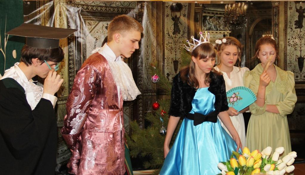 Очень убедительна была Анастасия Босько (Глупая Королева). Восторг зрителей вызвали Олеся Буркова и Наталья Синецкая, сыгравшие Мачеху и Дочку, Денис Ляшенко отлично вошел в образ Молодого Солдата и Учителя Королевы - профессора арифметики и чистописания. И, конечно, следует сказать о трогательном исполнении роли Падчерицы (Анна Крамарева). Отметим также великолепную игру Владислава Ильинского (Месяц Апрель и Посол Западной Державы). В школе все знали, что он заболел, мог отказаться от участия в спектакле, но чувство товарищества, ответственности взяло верх! Музыкальное и световое сопровождение премьеры обеспечил Денис Утянский. Словом, под руководством режиссера Челноковой Любови Владимировны наши театралы уже достигли определенных вершин, они поняли главное: на сцене нужно, как говорила Фаина Раневская, жить! Успехов вам, юные актеры! Ждем новых постановок!