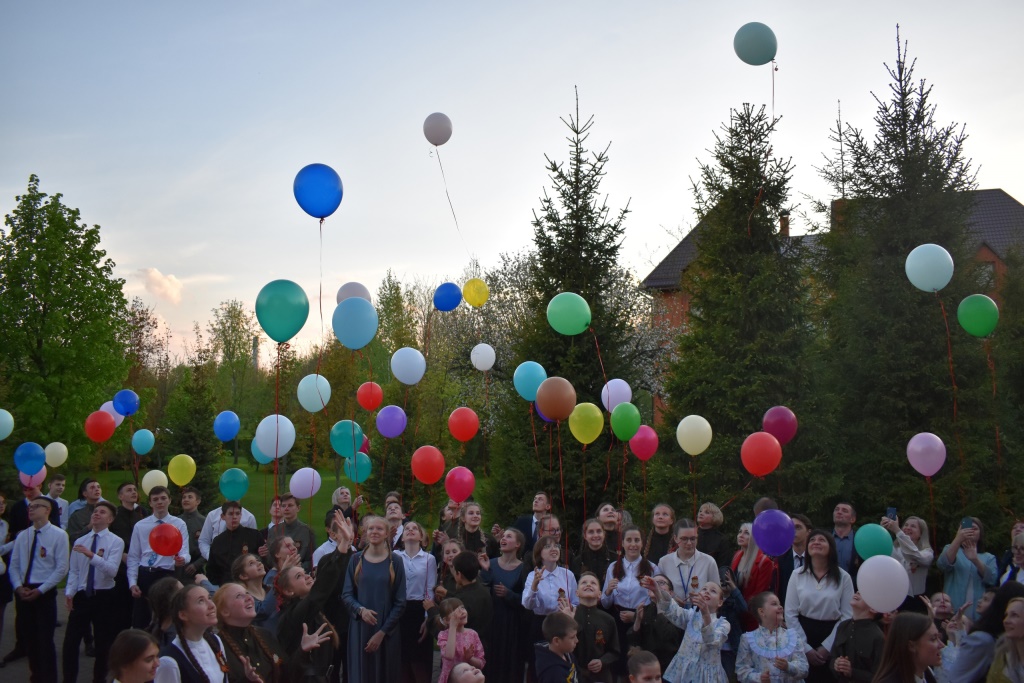 В конце мероприятия все школьники исполнили песню «День Победы» и выпустили в небо разноцветные шары, символизирующие как салют в честь победы, так и веру во всё самое светлое и доброе.