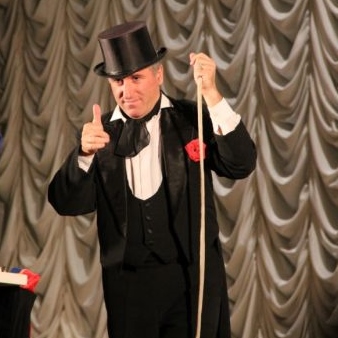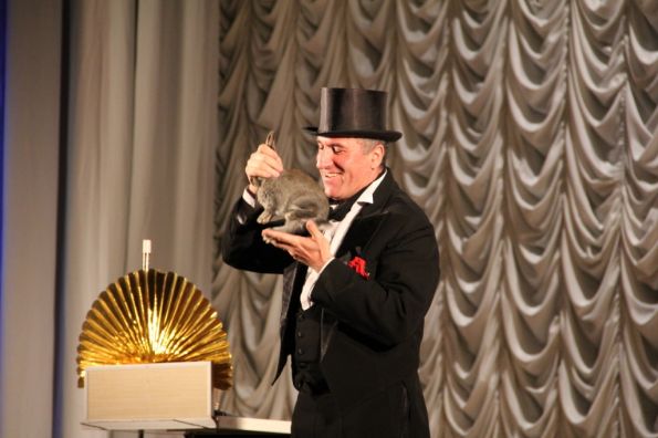 Уровень мастерства этого артиста позволяет ему выступать на больших концертах на одной сцене со знаменитостями, часто мелькающими на экране телевизора, поэтому нам очень повезло увидеть его трюки вживую. Мы на полтора часа ушли в незабываемую сказку, где голубь может внезапно превратиться в белоснежный платок, вместо пламени появляется настоящий кролик, куклы летают, а обычная трость вдруг расцветает. Иллюзионист с легкостью доставал огромное количество карт и монет из НЕОТКУДА и даже превращал обычную бумагу в деньги. Не только дети, но и взрослые с изумлением следили за каждым движением артиста. Приятной неожиданностью было увидеть на сцене нашего учителя изобразительного искусства Сальникову Людмилу Павловну, которая была приглашена на сцену Мануэлем.