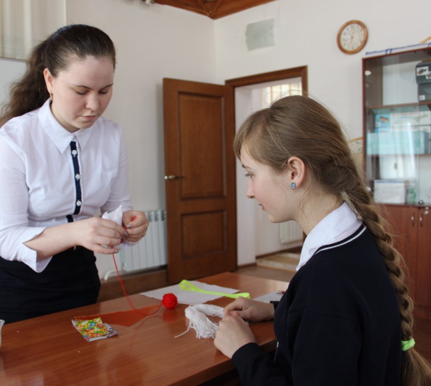 Так, с помощью Федоровой Алены и Веретенниковой Галины Михайловны, организовавших мастер-класс, ребята открыли для себя еще одну традицию нашего народа и научились делать оберег.