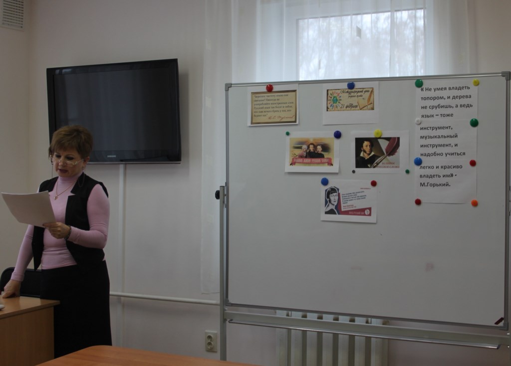 В нашей школе тоже все приняли участие в этом празднике: были проведены тематические классные часы, для учеников 6-7 классов организовано мероприятие «Что ты знаешь о языках мира?» (учитель русского языка и литературы Белозерских Е. И.). Сначала ребята участвовали в диспуте по проблеме сохранения родного языка, затем приняли участие в викторине «Сильное звено» (победил Лебедев Максим, 7 класс). Оказывается, многие слова из других языков мы можем объяснить: охлос, кора-доктор, синлыс и другие. С удовольствием решали логические задачки по русскому языку, объясняли значение фразеологизмов. Очень проникновенно прозвучали стихи о русском языке в исполнении Мильской А., Осадчей Ю.