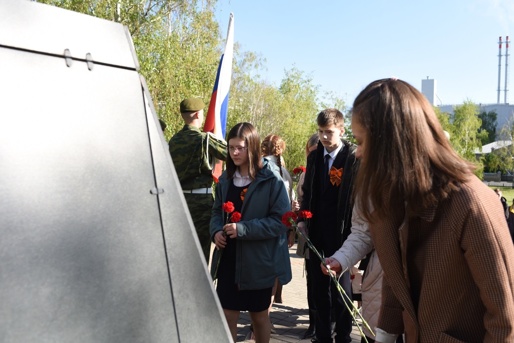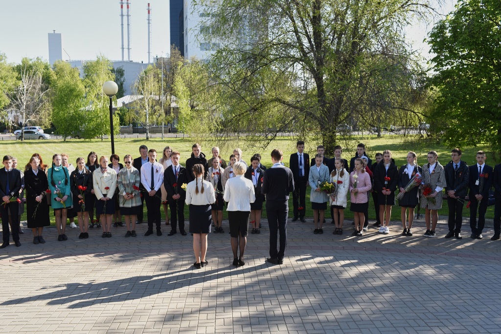 Рано утром учащиеся школы и преподавательский состав приехали к памятнику воинам Эфирокомбината, не вернувшимся с войны, для проведения митинга.