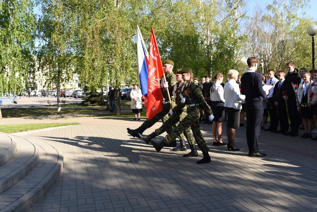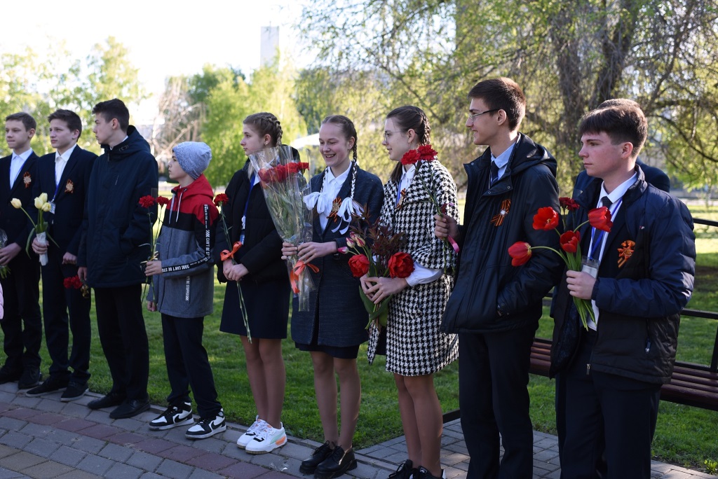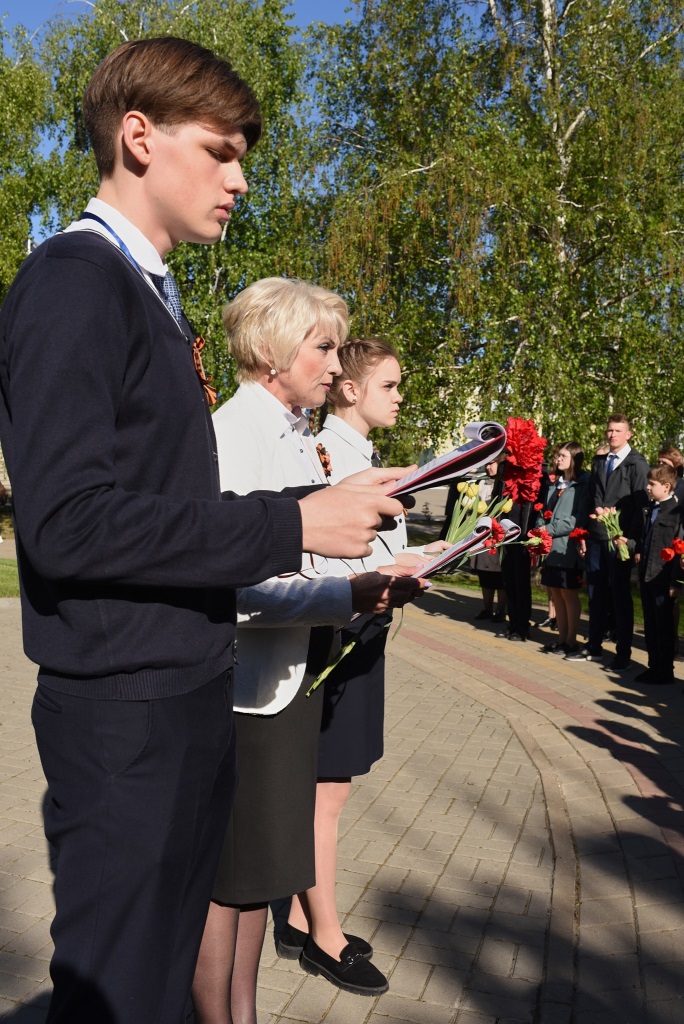 Вступительное слово произнесла Карпелянская Римма Борисовна, заместитель директора по духовно-нравственному направлению школы, а затем парадный расчёт из 4 человек занял своё место около монумента. Бархатов Иван и Левшина Юлия прочли стихи, прозвучала информация о стойкости советских воинов и мирных жителей, которые ценой собственных жизней ковали победу на фронте и в тылу. Минутой молчания присутствовавшие почтили память всех погибших, а затем были возложены цветы к подножию памятника.