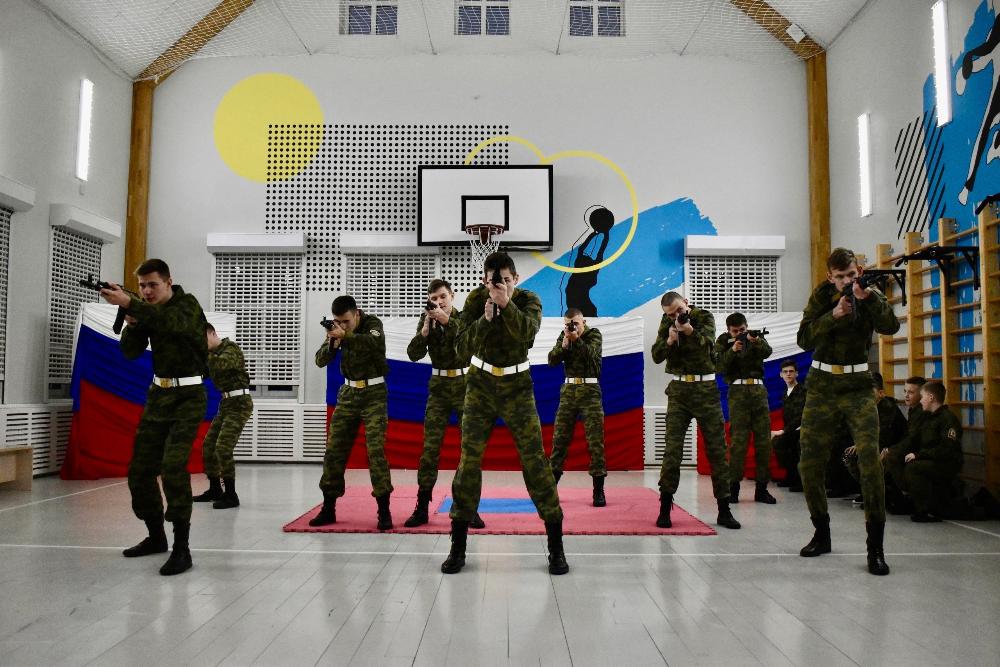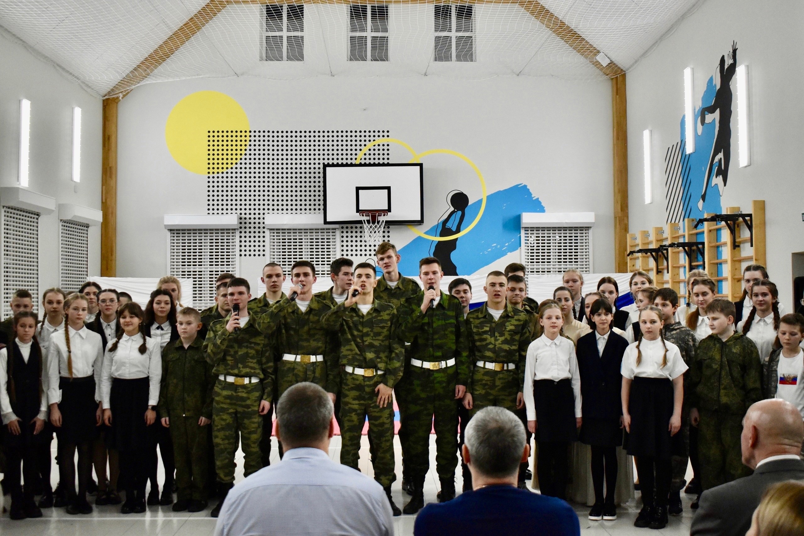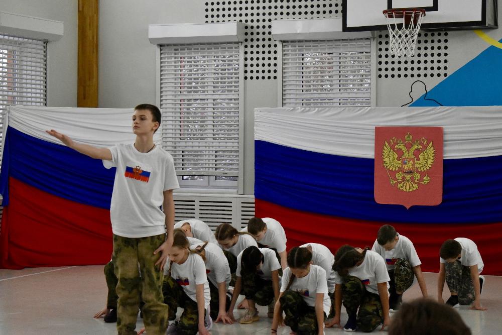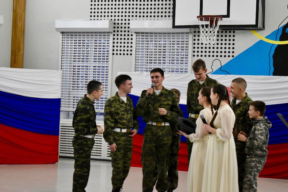 Затем все присутствующие мужчины и юноши были поделены на 3 команды: «Сокол», «Орлы» и «Морпехи» - и приняли участие в состязании «А ну-ка, парни!». Сначала каждая из команд продемонстрировала свою строевую подготовку, затем участники соревнований отжимались на время, подтягивались на турниках, поднимали гири, разбирали автомат с закрытыми глазами и даже успели сделать полноценную силовую тренировку! Кроме того, они проявили себя и в медицинской сфере, а также ими были сказаны приятные слова по отношению к девушкам «Белогорского класса»! В результате состязаний победила команда «Морпехи». Но самая долгожданная часть концерта ждала всех присутствующих в конце мероприятия , и это было показательное выступление, где юноши показали навыки ведения боя. Благодаря организаторам этого весёлого и впечатляющего зрелища, Лопатченко Роману Владимировичу и Грачёвой Валентине Владимировне, мероприятие получилось очень интересным! Хочется отметить, что все выполняли задания дружно и хотели вывести свою команду вперед. Зрители аплодировали стараниям каждого парня и отца. Праздничный концерт закончился исполнением всей школой торжественной песни.