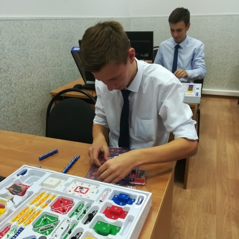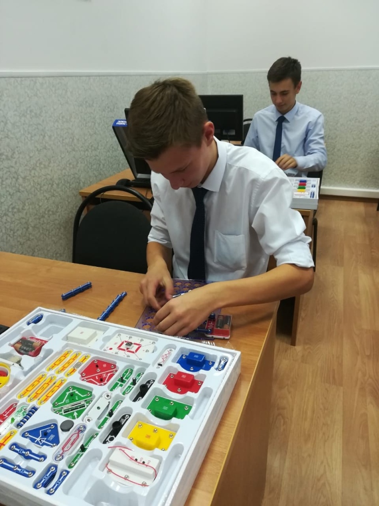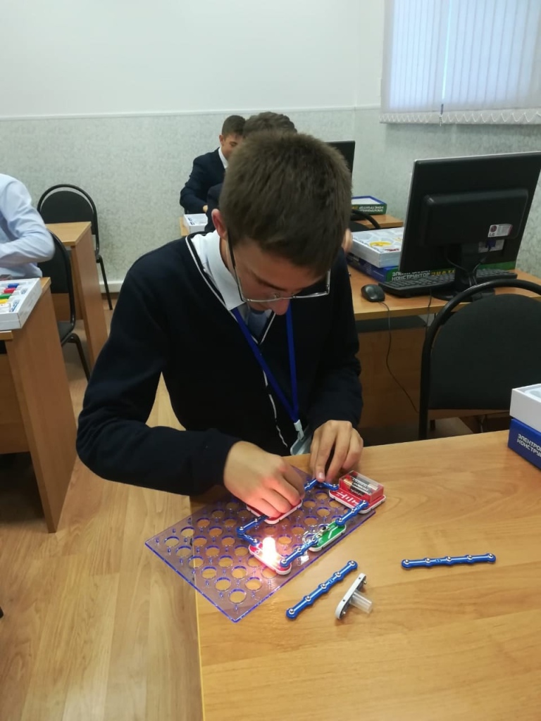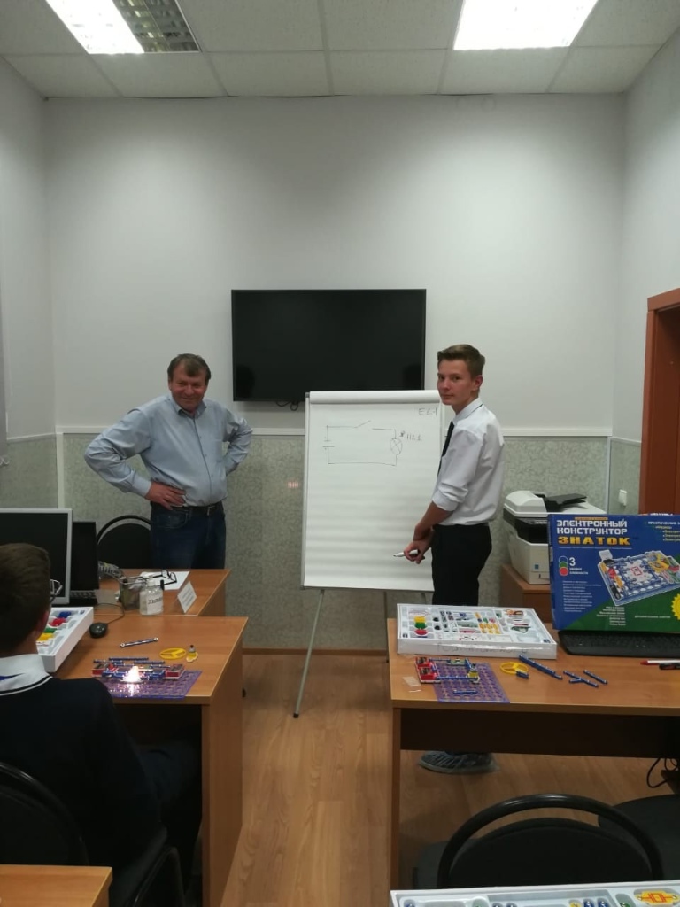 По рекомендации куратора, Варнавского Юрия Алексеевича, для ребят были закуплены конструкторы «Знаток», позволяющие собрать около 1000 электрических цепей! На каждом занятии предлагается собрать новую схему, причем задача из урока в урок усложняется.