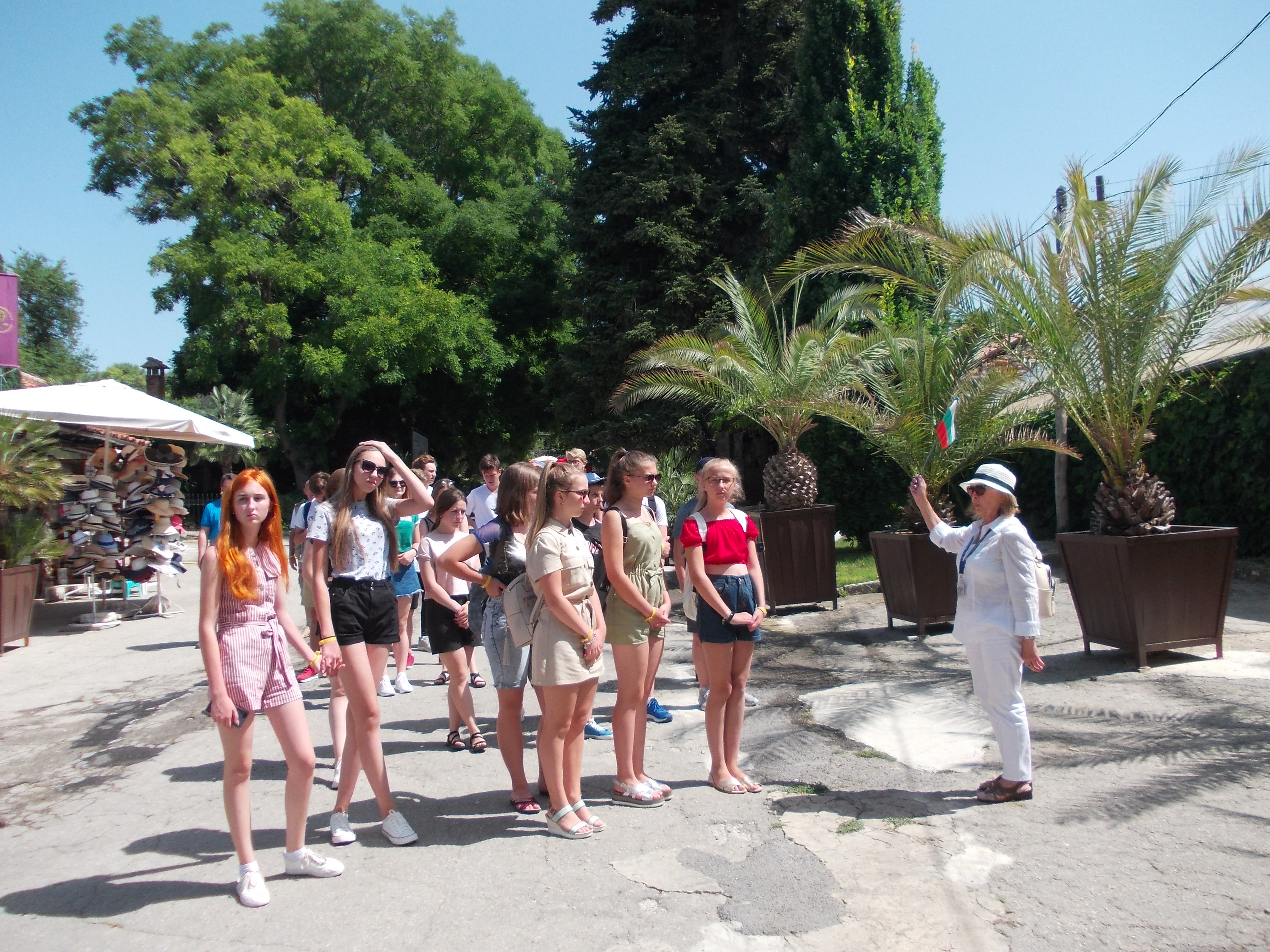 Мы добирались до «страны масленичной розы» и поездом, и самолётами, и автобусом, но когда прибыли на место, то поняли, что прекрасный отдых нам обеспечен. Отель «Диамонд» на курорте «Солнечный берег» порадовал нас удобным расположением, хорошей кухней и достаточно просторными номерами. Сколько всего интересного нам удалось посетить за это время! Это и сказочный замок в селе Ровадиново, и дворец румынский королевы Марии, и ботанический сад, славящийся своими диковинными кактусами. Старинный город Созополь поразил сохранившимися домами 9-10 века, на легендарном мысе Калиакра (северное побережье Болгарии) мы услышали о фракийских племенах и увидели остатки древней крепости, а город Несебр предстал перед нами настоящим памятником старины, древнейшим поселением, в котором жизнь никогда не прерывалась в течение тысячелетий. Наш русскоговорящий экскурсовод Людмила и Алескендер Энверович Рамазанов рассказывали много захватывающего о событиях, связанных с теми местами и личностью князя Святослава.