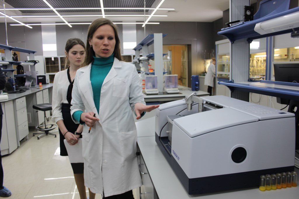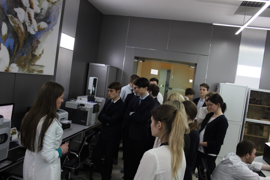Сначала все экскурсанты собрались возле величественного Чёрного замка, который поражает своими размерами, дизайнерским фасадом здания и природно-ландшафтной территорией вокруг. Лиза была в качестве экскурсовода. Она рассказала, что Инновационный центр был открыт в 2013 году. В здании находятся две юридические организации, которые занимаются разными видами деятельности. Это Инновационный центр “Бирюч”, генеральным директором которого является Н.Г. Денисенко, и Инновационный центр “Бирюч-НТ”, генеральным директором которого является Т.В. Санина. Под чутким руководством профессиональных директоров сотрудники осуществляют исследования в таких областях науки, как рентгеновская томография, пищевая технология, олеохимия, биотехнология, клеточная технология, генная инженерия, сенсорная робототехника, приборостроение, создание уникальных летательных аппаратов и.т.д. Чтобы поближе осветить проектную деятельность этих подразделений, Лиза провела экскурсию в самом замке. Мы побывали в «Аналитической лаборатории», которая условно делится на две секции. Нас оповестили, чем занимаются сотрудники, какое у них образование и какие требования существуют для штата работников. Надо отметить, что все лаборатории оборудованы по последнему слову техники. Компания «ЭФКО» не жалеет материальных средств на покупку лучшего оборудования, так как понимает его значимость и ставит перед собой задачи и цели, для развития которых необходим тот или иной прибор.