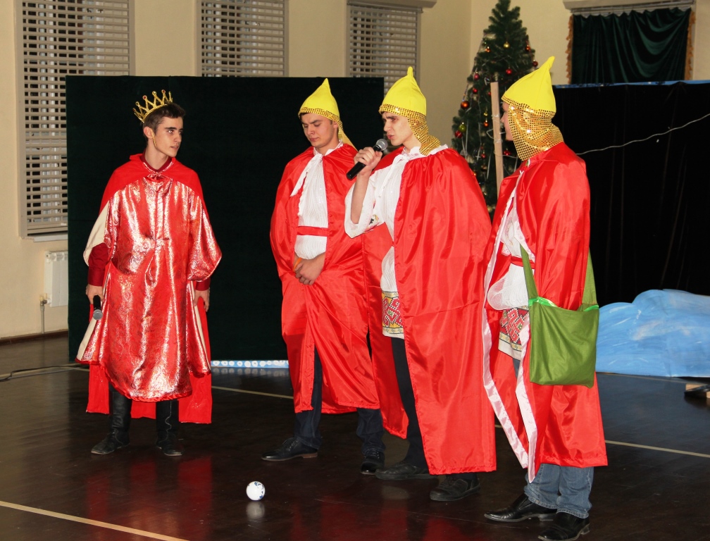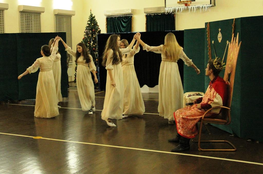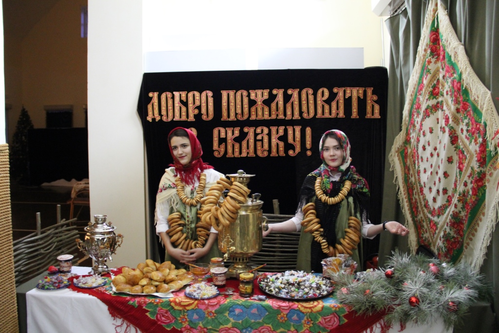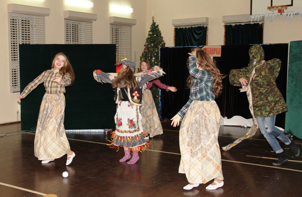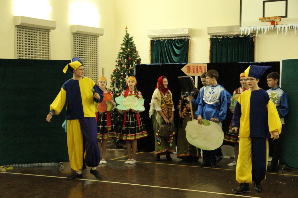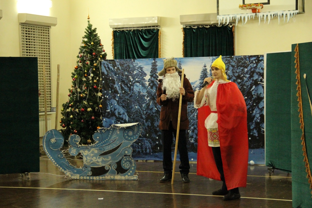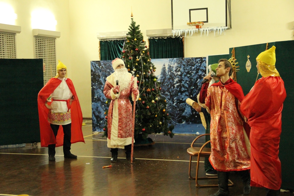 Учителя, учащиеся, а также многочисленные гости побывали в сказке «Три богатыря в поисках новогоднего чуда». Новогодняя ярмарка, березы со снежинками, нарядная елка – все это помогло окунуться в атмосферу настоящей русской зимы.