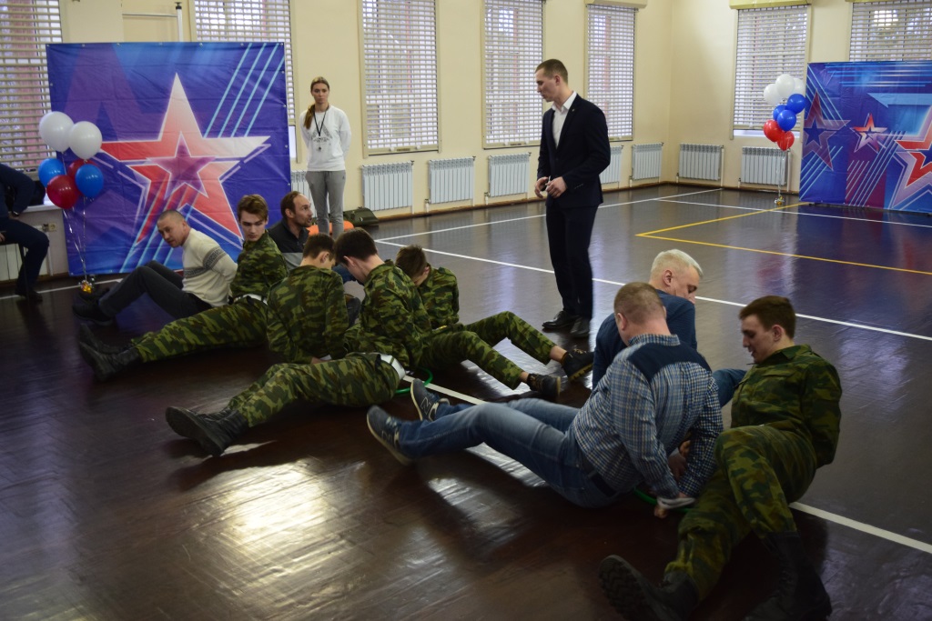 Все мужчины были разделены на три команды: «Египетская сила», «Мотоблок» и «Дружба». Участникам пришлось соревноваться между собой в различных умениях. К примеру, они должны были проявить свою ловкость: собрать спички в коробок со связанными за спиной руками, донести монетку до банки с помощью одних только коленей! Как оказалось, это не так просто, как кажется, но команды справились с этими заданиями. Также был подготовлен отдельный конкурс для капитанов, в котором участникам пришлось «поднапрячь извилины» и поработать головой, быстро и, самое главное, правильно отвечая на интересные вопросы ведущих. Соревновались команды и в поднимании гирь, и в перетягивании каната. Вот это уже была настоящая борьба! Во время праздника был проведен интерактив со зрителями в форме игры «Угадай мелодию», а также мужчинам удалось рассказать зрителям несколько веселых историй о своих годах, проведённых в армии.