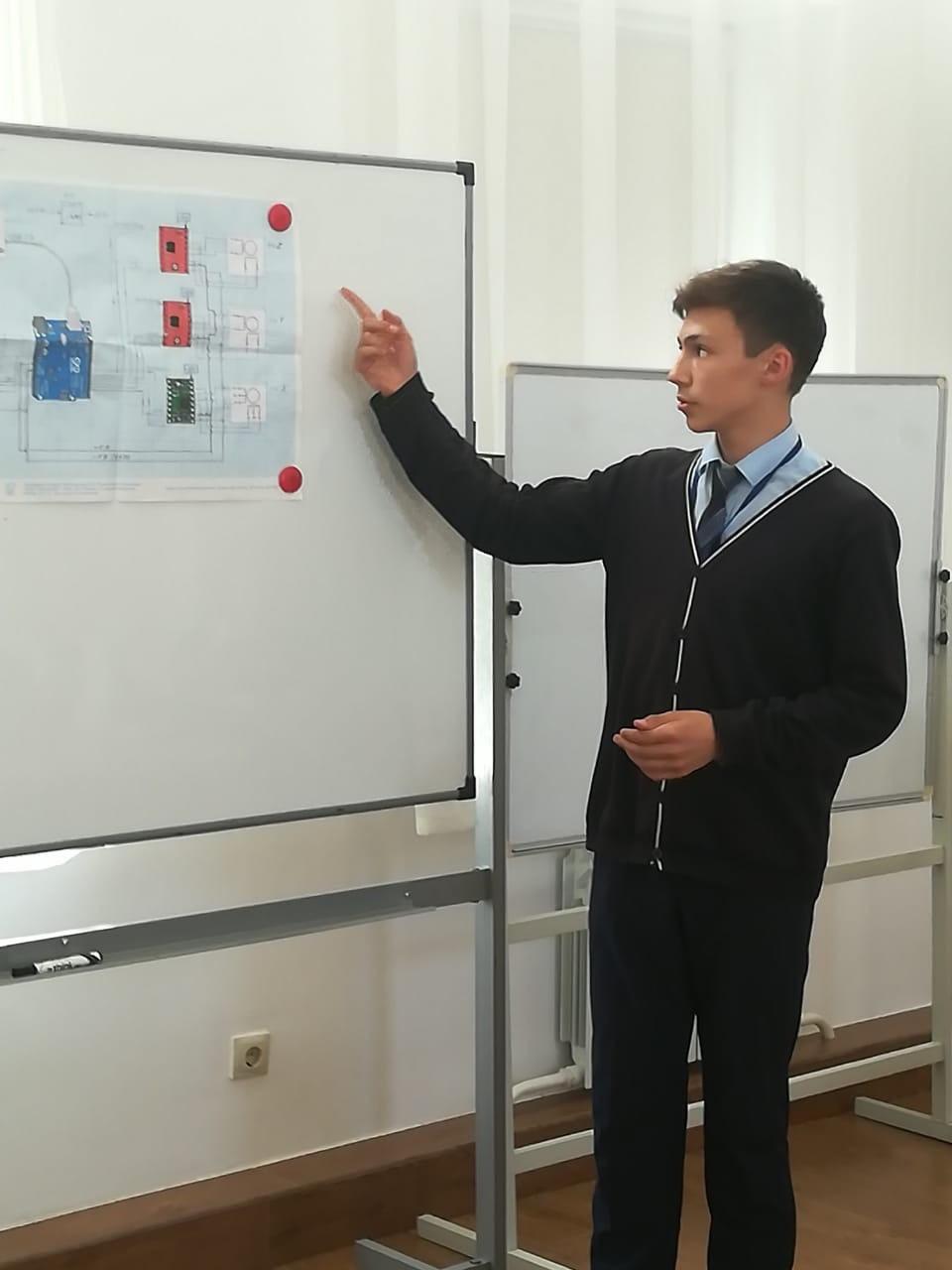 Также в мае прошла итоговая защита проектов для мальчиков 8-9 классов. Весь год они посещали занятия в учебном центре по курсу «Основы электротехники и промышленной электроники». Там они научились читать чертежи и схемы, паять, производить демонтаж электрощитов, работать с электроизмерительными приборами. На итоговом мероприятии ребята продемонстрировали свое изобретение – плоттер (графопостроитель) – устройство для автоматического вычерчивания с большой точностью рисунков, схем, сложных чертежей. Этот прибор подключается к компьютеру, затем можно задать какое-либо изображение, которое в зависимости от его сложности будет построено на бумаге через определенное количество времени. И пусть на практике работа плоттера оказалась не идеальной, но зато ребята приобрели ряд навыков и умений, которые обязательно пригодятся им в будущем.