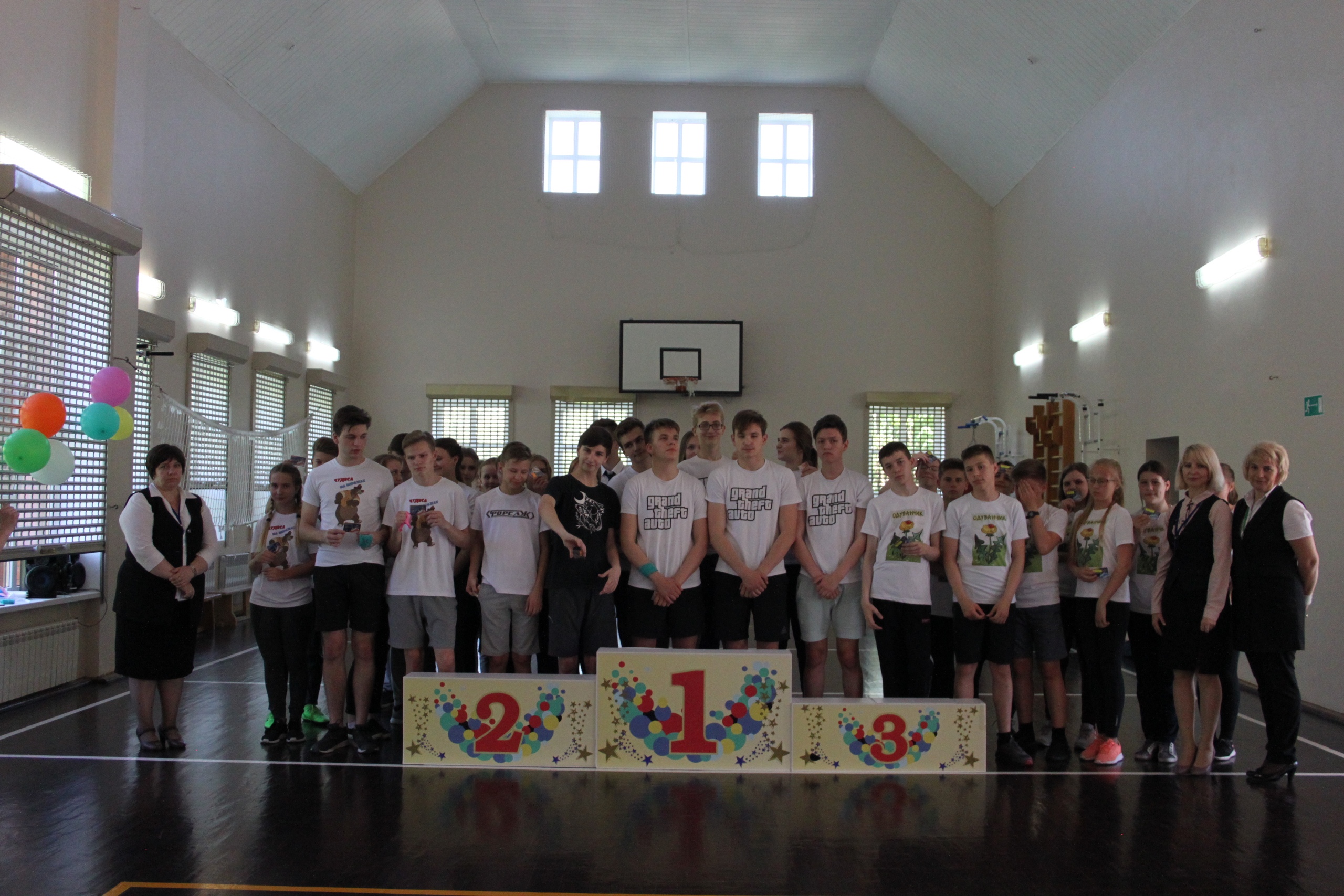 Как же прошло закрытие физразгрузки? Сначала ребята поприветствовали друг друга девизами. После этого каждая команда представила энергичные флешмобы, порадовав и рассмешив присутствующих. Мероприятие получило название «Детство». В процессе его проведения ребята участвовали в различных конкурсах: пытались понять объяснения в игре «Устами младенца», отвечали на различные вопросы, посвященные мультфильмам, исполняли веселые детские песенки. Также мы поучаствовали в подвижных играх. Члены команд облачались в чепчики и строили пирамидки, пили напитки через трубочки и играли в «Сороконожку», стараясь не растерять шары без помощи рук. В конце физразгрузки все участники были награждены сертификатами за старания в течение года и четверти. Победителем стала команда 10 класса («ГТА»), второе и третье место раздели команды «Форсаж» (9 класс) и «Чудеса на виражах» (11 класс). Почетное четвертое место заняла команда 7-8 класса «Одуванчик». Можно сказать, что во время проведения мероприятия ребята с головой окунулись в детство. Закрытие «School-drive», несомненно, запомнится ученикам как очень веселое, интересное событие.