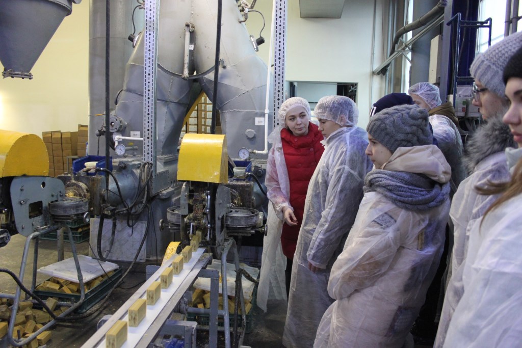 В ходе экскурсии нас разделили на 3 группы. Прежде чем мы вошли на предприятие, нас ознакомили с техникой безопасности, выдали специальные халаты и шапочки, рассказали, какие цеха мы будем осматривать. Какая это была увлекательная экскурсия! Нам рассказали о том, что мыло производится здесь очень качественное, с применением новейшего европейского оборудования, под контролем сотрудников французской компании и учёных Инновационного центра «Бирюч». Мы увидели, как происходит нарезка, штамповка и упаковка мыла, как разливается по флаконам жидкое мыло, какой ассортимент продукции находит своего покупателя.