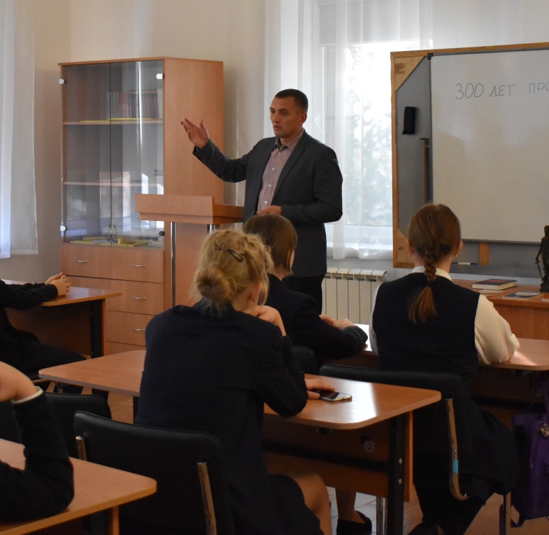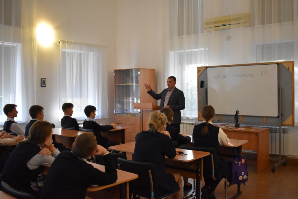 Он рассказал учащимся о том, что Российской Прокуратуре в этом году исполняется 300 лет и в нашей стране по этому поводу проходят различные мероприятия, в частности, встречи с представителями данной структуры.