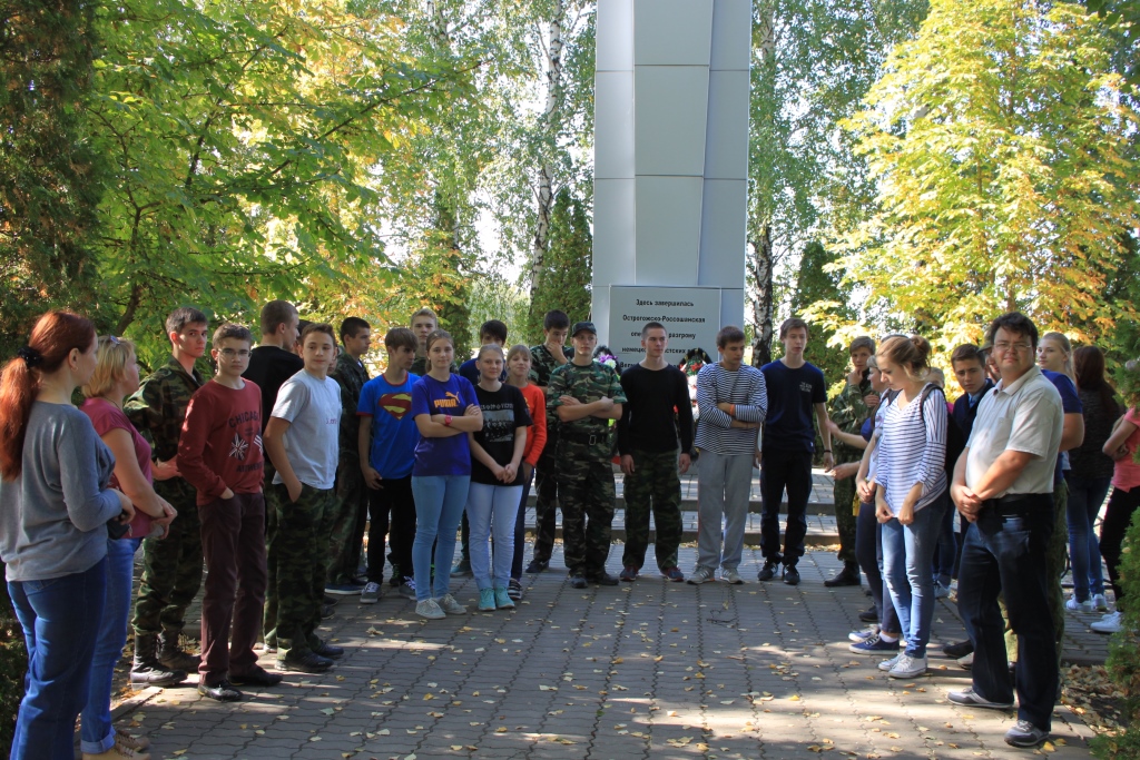 Немного отдохнув после дороги, мы отправились к стеле, чтобы почтить память воинов, участвовавших в проведении Острогожско-Россошанской операции. Федорищев С. Н., учитель истории, и Пушкарев В. А, учитель основ безопасности жизнедеятельности, попытались воссоздать в нашем воображении события тех лет, рассказать о технике, которая использовалась русской армией и армией противника, о роли, которую сыграла эта операция в исходе войны.