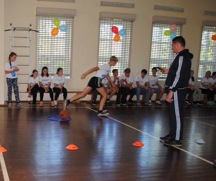Но вернемся к главному событию – открытию «School–drive»! Общий командный наставник Владимир Сергеевич перед началом игры пожелал каждому удачи, а главное – целеустремленности, силы воли в борьбе за победу. Команды представились друг другу, объявили свои девизы, и начались весёлые спортивные эстафеты. Интересно задуманные соревнования заставляли действовать нас быстро, чётко и слаженно. Например, в одной эстафете нужно было и пробежать с мячом, и попасть в корзину, и не перепутать все эти действия. Особенно быстрыми, ловкими и меткими были мальчишки старших классов: они как настоящие спортсмены преодолевали дистанцию и справлялись с препятствиями.