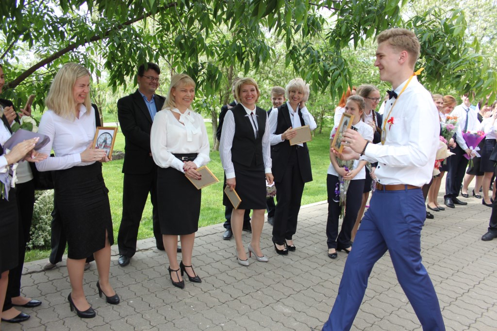 Музыка, торжественность момента, напутственные слова от Тютюник Е.П. (директора школы), Рамазанова А. Э. (советника по вопросам образования), отца Александра, слёзы на глазах, стихи от младших школьников, выступление школьного ансамбля – всё это было посвящено главным виновникам этого торжества – выпускникам. Они, такие трогательные и немного растерянные, открыли мероприятие вальсом, затем сказали много добрых слов классному руководителю Чапской Я. М, подарили шуточные портреты учителям, признались в любви родителям. Эти 11 мальчишек и девчонок постарались сделать праздник добрым и запоминающимся. И это у них получилось.