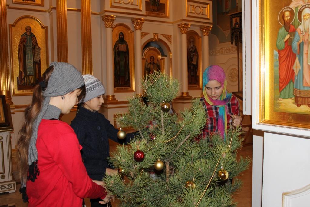 С момента освящения Храма учащиеся «Белогорского класса» принимают участие в украшении молельного зала перед Рождеством.