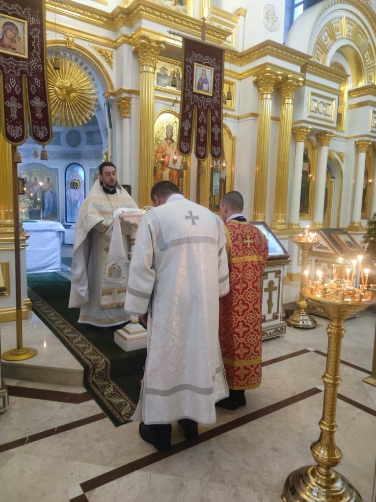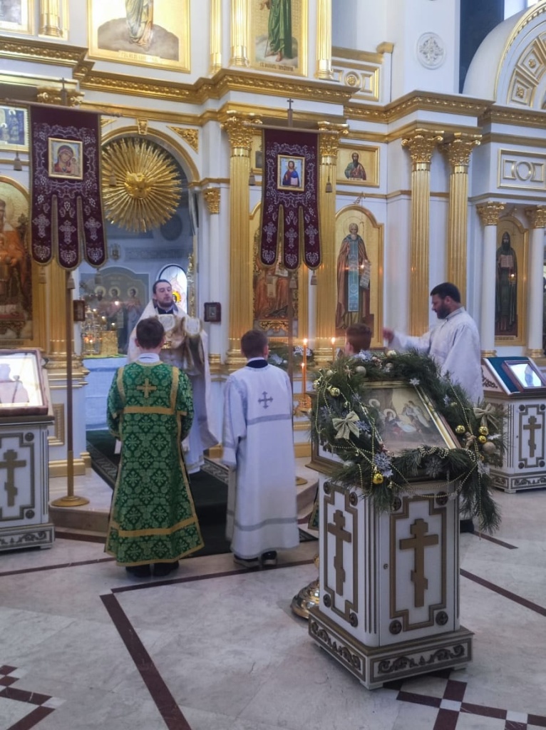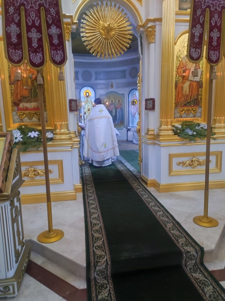 В завершении литургии отец Александр поздравил всех с Рождеством и напомнил присутствующим о значении этого праздника, о любви и мире, которые проповедовал Христос.