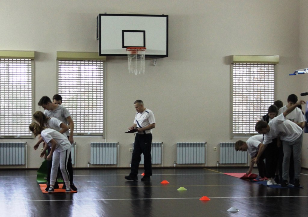 Все ученики пришли в зал в фирменных футболках с логотипами своих команд. Всего их было четыре: «Атланты», «Великолепная десятка», «Легион» и «Тролли». Ребята были настроены решительно. Соревнования включали в себя три этапа. Одним из самых сложных был первый. От команды участвовали по пять человек. Они должны были встать на коврик и в это же время расстелить другой перед собой. Самым интересным было третье задание. В нём участники бежали по очереди. Но не просто бежали, а задача была усложнена. Они должны были взять воздушный шарик и подталкивать его палкой. После этого прибежать и нарисовать одну часть тела лошади. Было очень смешно и интересно. В конце соревнований жюри подвело итоги. По итогам первой четверти 1 место завоевал 9 класс («Великолепная десятка»), 2 место у 10 класса («Легион»), 3– 11 класс («Тролли»). Также в качестве награды все ученики получили денежные сертификаты в магазин «Спортмастер». Желаем всем новых достижений во 2 четверти! Ведь главное – это даже не победа, а живое общение, умение создать командный дух.