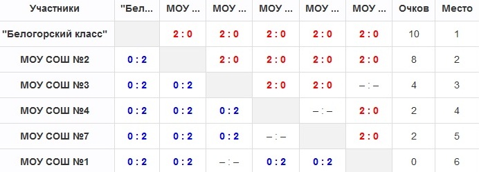 Турнирная таблица