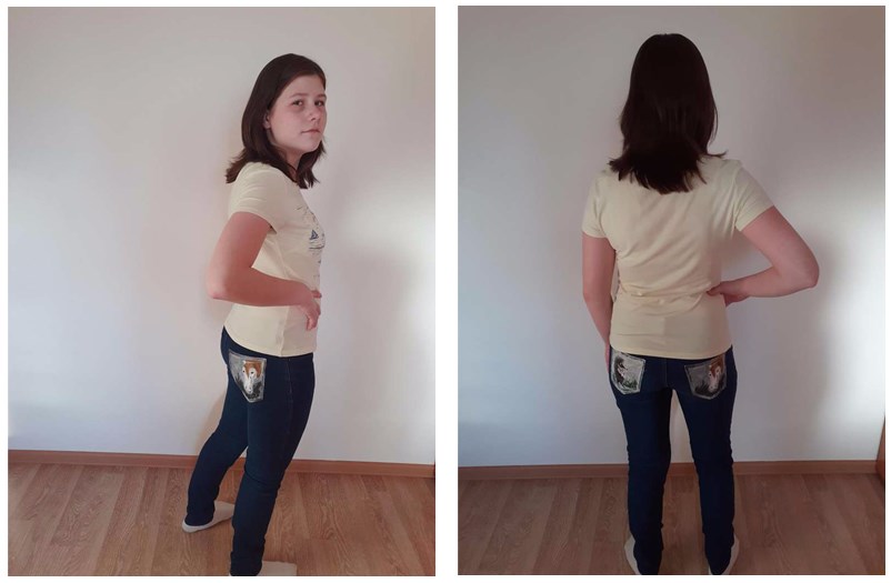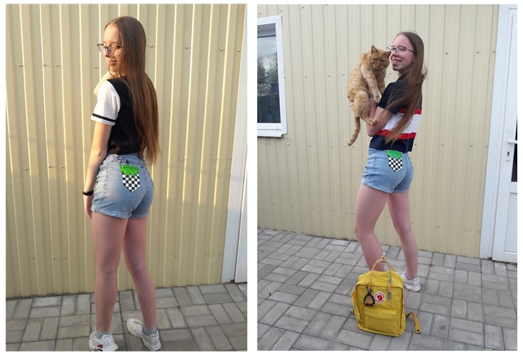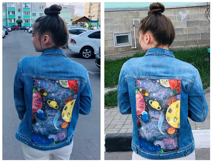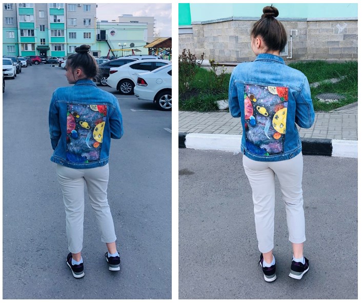 Не менее интересным оказалось и другое творческое задание для девочек – фотоотчет «Мое дефиле». На протяжении третьей четверти девушки выполняли рукотворную работу акриловыми красками «Декорирование джинсовой одежды». Кто-то простым незатейливым рисунком украсил свои джинсы, кто-то усложнил себе задачу, подобрав комбинированный рисунок или даже целый сюжет, кто-то «оживил» шорты, а кто-то сделал свою куртку прямо произведением искусства! Кто на что был горазд! Итогом этой продолжительной творческой работы стало персональное «дефиле-фотосессия», где каждая девочка продемонстрировала джинсовую одежду, декорированную своими руками. И чем они не модели, наши юные леди?!