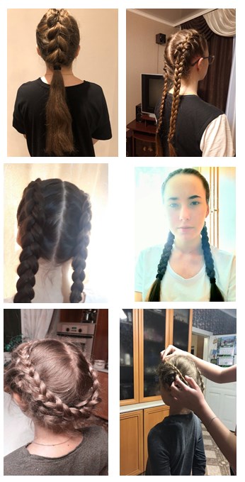 Так, за это время ученицы 8-9 класса, чтобы не потерять навык плетения школьных кос, поучаствовали в виртуальном конкурсе «Коса-школьная краса» в рамках дистанционных занятий по стилистике. Особенно отличились девочки 9-го класса Быкова Надежда, Чертова Виктория и Осадчая Юлия, выполнив аккуратное оригинальное плетение. А Маша Шаповалова даже привлекла для участия в этом конкурсе свою младшую сестренку. Такая прическа и дома поневоле заставляет самоорганизоваться и настроиться на рабочий лад.
