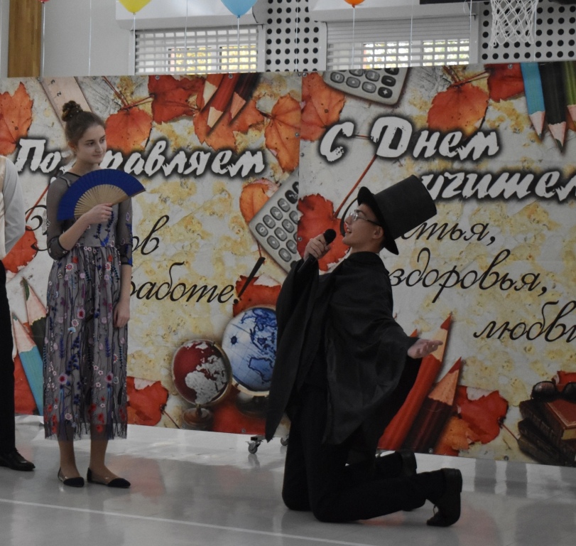 Учебный день пролетел незаметно, и вот подошло время концерта. Ребята постарались и интересно оформили зрительный зал. Учителя радовались номерам учеников, потому что звучали красивые песни, трогательные стихотворения, а весёлые сценки и танцы никого не оставили равнодушными. Каждое слово несло глубокий смысл, ученики хотели показать, как дороги им их любимые учителя. В конце выступления ребята пытались отгадать, кто «прячется» из преподавателей за короткими, но такими увлекательными историями и фотографиям из детства.
