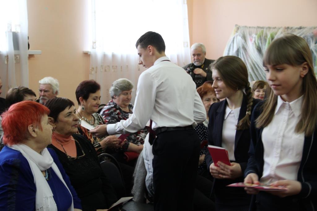 Кроме музыкальных и стихотворных поздравлений, все участники хора получили небольшие подарки. К музыкальному поздравлению школьников активно подключились сами ветераны, подпевая знакомые им песни.