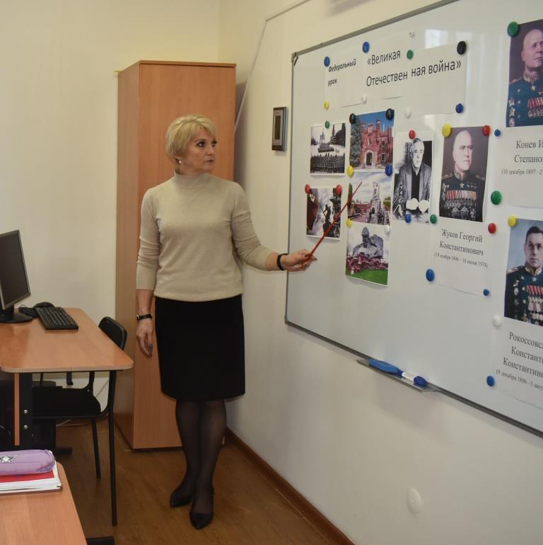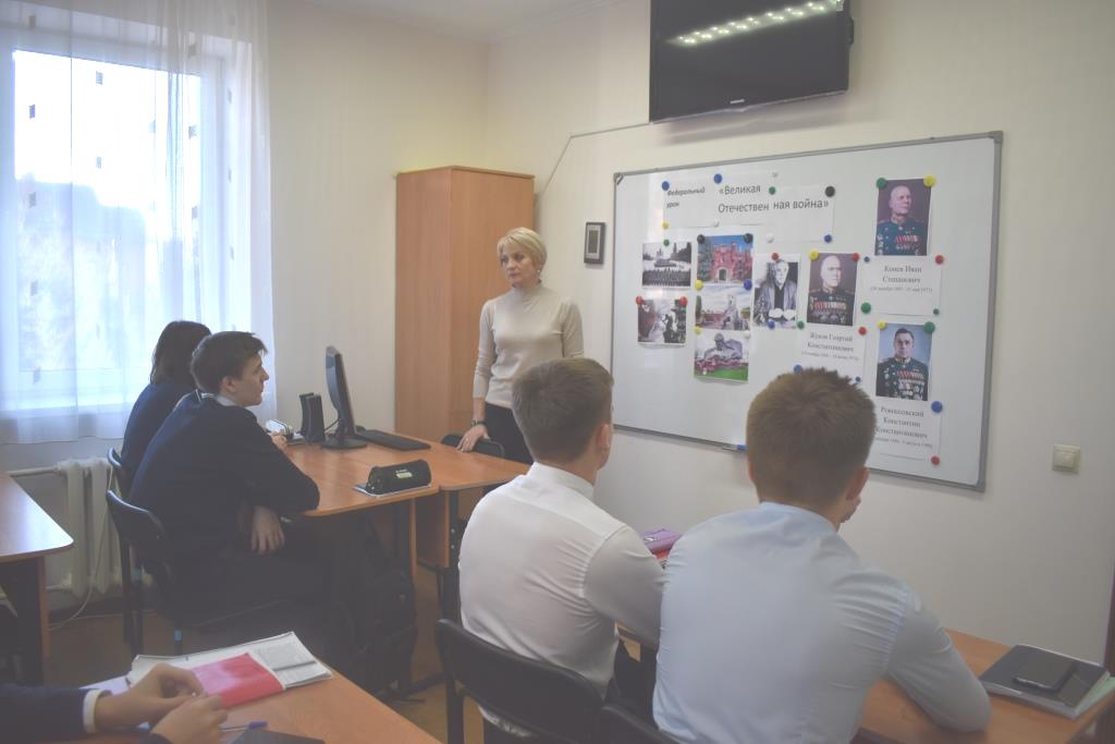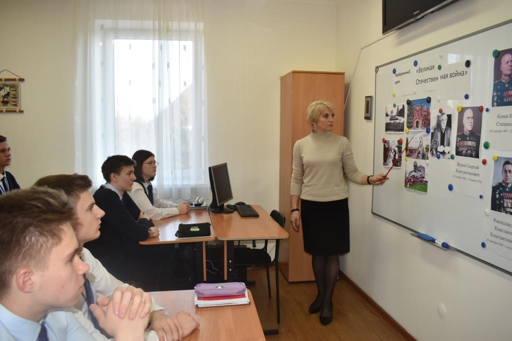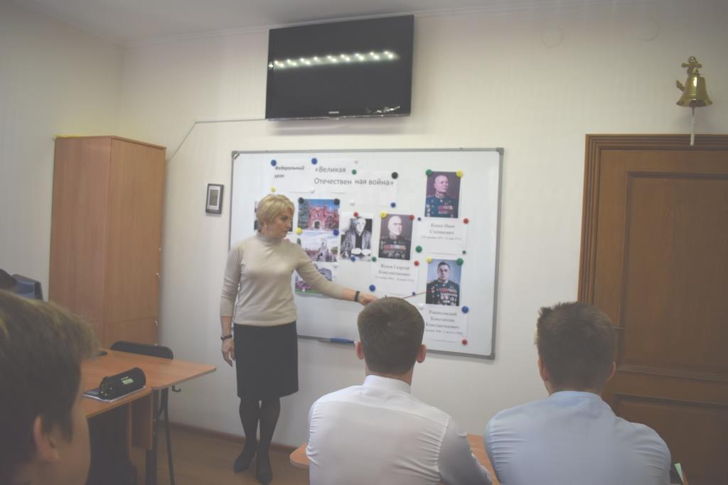 Учащиеся 10 класса посмотрели видеоролики «День Победы» и «Водружение советского флага над рейхстагом», вспомнили знаковые для нашей страны битвы, закрепили знания об основных причинах, характере и особенностях Великой Отечественной войны, познакомились с биографиями маршалов Советского Союза Г.К. Жуковым, И. С. Коневым и К. К. Рокосовским. В ходе занятия Карпелянской Риммой Борисовной были зачитаны слова выдающегося советского и российского писателя В. Астафьева, который сказал, что «… Это не должно повториться!». Ребята высказали своё мнение, пояснив, что пока жива наша память, жив и сам народ, переживший лихие испытания в разные годы, доказавший своё право на свободу и независимость. Учащиеся ответили на ряд поставленных вопросов: вспомнили подвиг защитников Брестской крепости, 28 панфиловцев, как проходила битва под Москвой и Курская битва, когда началось контрнаступление советских войск под Сталинградом, что такое «Дорога жизни» и какую роль она сыграла в блокаде Ленинграда и т.д. Занятие получилось эмоционально насыщенным и информативным. В конце был сделан вывод о том, что современное поколение должно помнить беспримерный подвиг советского народа, который одержал великую победу на фронте и в тылу.