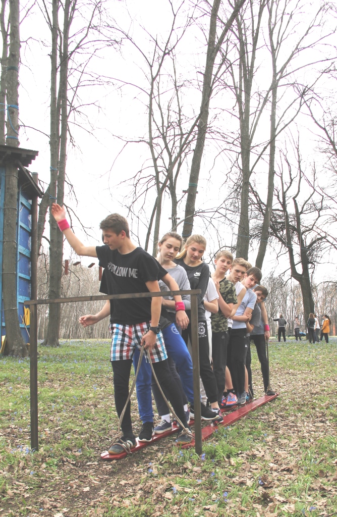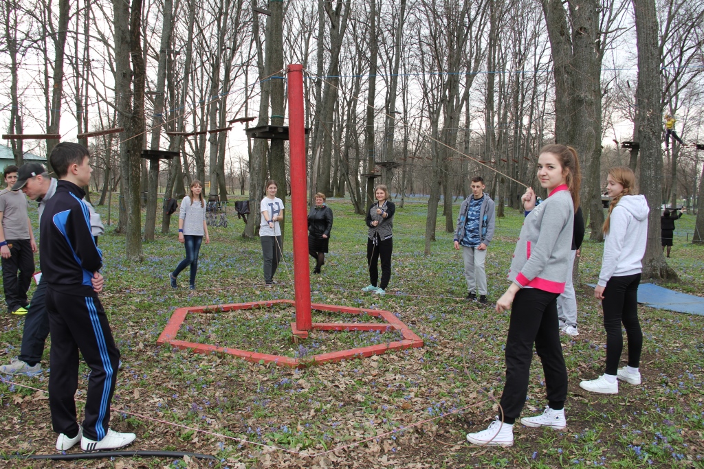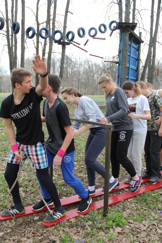 Ребят разделили на три команды и провели между ними соревнования. Команды получили названия: зеленых, красных и синих. Все ребята прошли четыре испытания. Каждое из них нужно было пройти как можно быстрее, а работать нужно было всей командой. Последним самым интересным и сложным испытанием был «Веревочный городок». Все команды справились с заданиями. По подсчетам судий получились такие результаты: первое и второе место заняли сразу две команды, зеленые и синие, а третье заслуженное место получила команда красных. Завершилось мероприятие небольшим пикником на свежем воздухе, и, конечно же, все ребята получили массу позитивных эмоций.