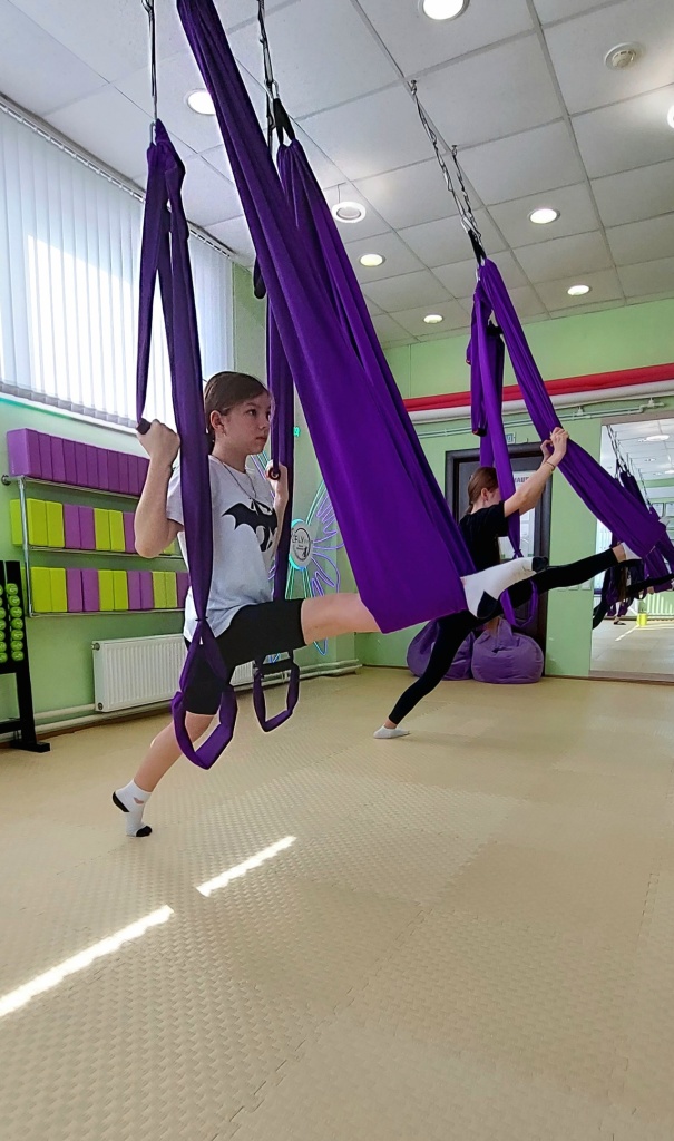 12 апреля наши ученицы в рамках занятий по стилистике имели возможность погрузиться в необычное и увлекательное занятие — йогу на гамаках. Это новое направление, ставшее популярным среди любителей йоги и активного отдыха, которое даёт девушкам уникальный опыт сочетания физических упражнений с элементами парения в воздухе. Под руководством опытного инструктора Инессы Флигинских занятия начались с разминки, во время которой участницы научились правильно использовать гамаки для поддержки своего тела. Упражнения включали в себя растяжку, балансировку и элементы медитации, что способствовало не только физическому развитию, но и релаксации присутствующих.