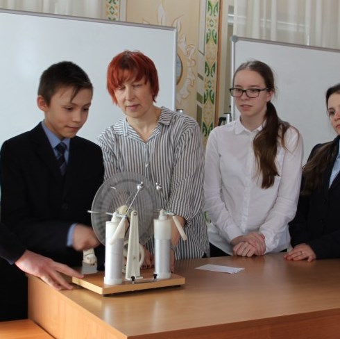 15 февраля, в среду, для учеников 6 и 7 классов прошло еще одно необычное занятие по «Занимательной физике» под руководством Гончарова Алексея(11класс), Рыжих Владислава (10 класс) и Рыжих Александра (9 класс). Александр продемонстрировал всем на примере действия автомата Калашникова, как реализуются законы сохранения импульса и механической энергии. После Саши выступил Алексей, заинтересовавший нас работой электростатического генератора, созданного британским изобретателем Джеймсом Уимсхёрстом. Генератор использует явление электростатической индукции, при этом на полюсах машины накапливаются электрические заряды, разность потенциалов на разрядниках достигает нескольких сотен тысяч вольт. Работает он с помощью механической энергии. В этом опыте также участвовали ученики 6 класса Юля Осадчая и Ваня Шевцов, вращавшие ручку генератора для получения электрического разряда в виде молнии.