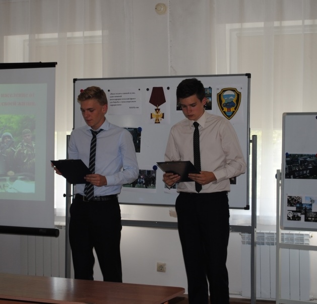 Башкатов Паша и Веретенников Дима рассказали о десяти воинах-спецназовцах - отважных мужчинах, отдавших свои жизни за спасение детей Беслана.