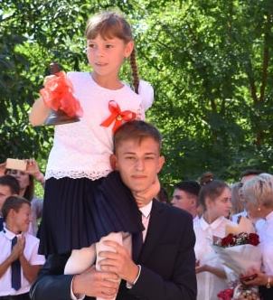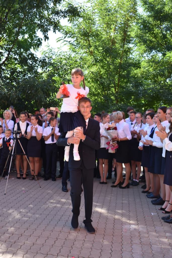 Наши незаменимые ведущие, Старов Кирилл и Шаповалова Мария, с задором открыли мероприятие и поддерживали торжественную обстановку на протяжении всего праздника. Начало линейки ознаменовалось гимном Российской Федерации, во время которого ученицы 11-го класса, Власова Анастасия, Клименко Елизавета и Пенькина Юлия, окончившие 10 класс с отличием, подняли флаг нашей великой страны.