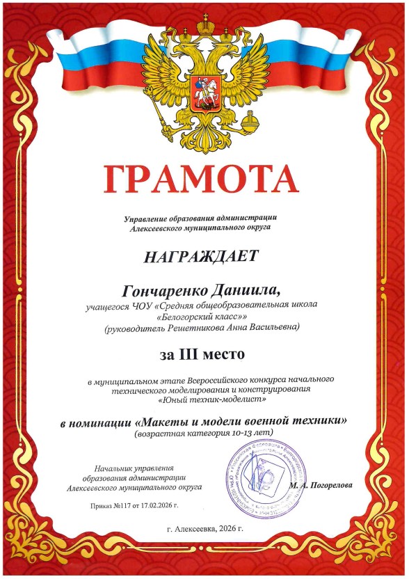 III место в муниципальном этапе Всероссийского конкурса начального технического моделирования и конструирования "Юный те...