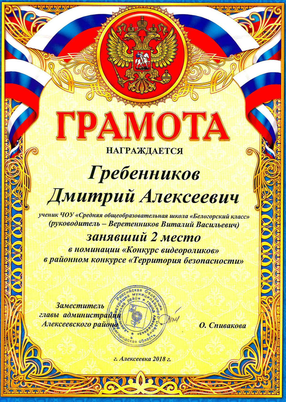 2 место в районном конкурсе "Территория безопасности" в номинации "Конкурс видеороликов" Руководитель: Веретенн...